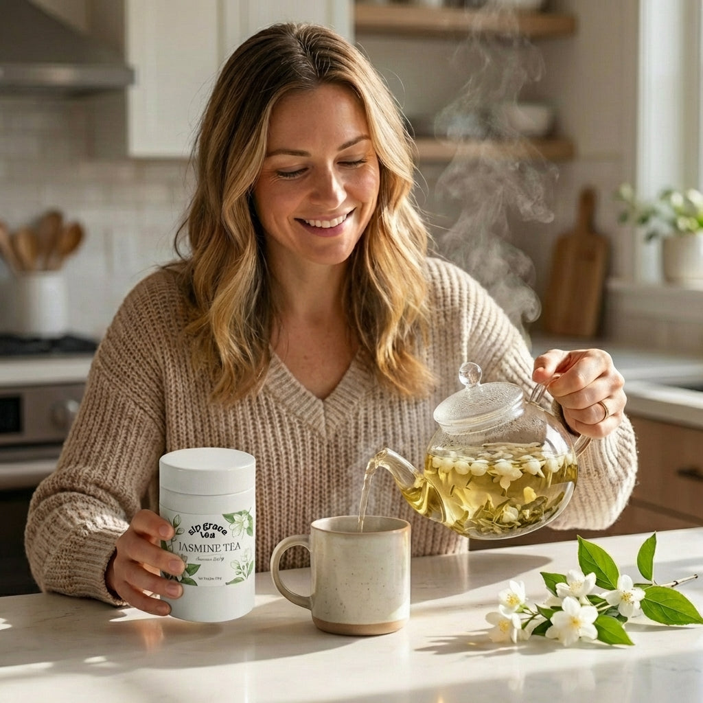 Step 5 —EnjoySip and enjoy the delicate jasmine aroma and smooth, refreshing taste.You may refill with hot water 2–3 times.